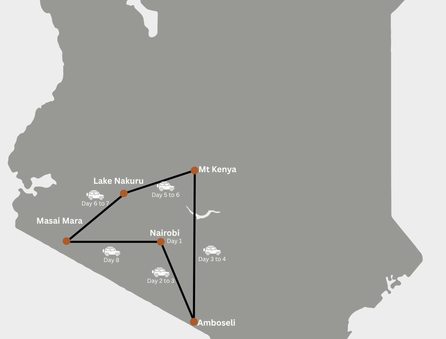 Nairobi · Amboseli · Mt. Kenya · Lake Nakuru · Masai Mara