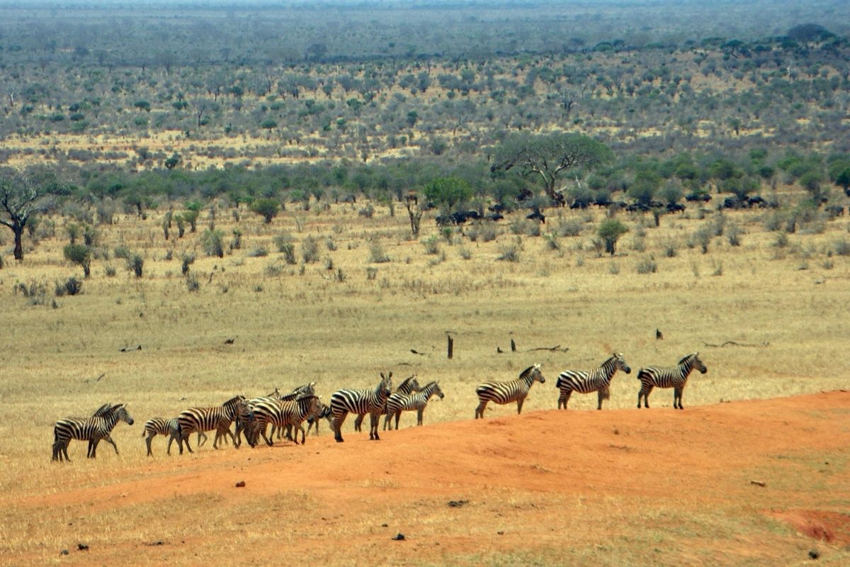 - Vast red‑dust plains and open Savannah in Tsavo East
